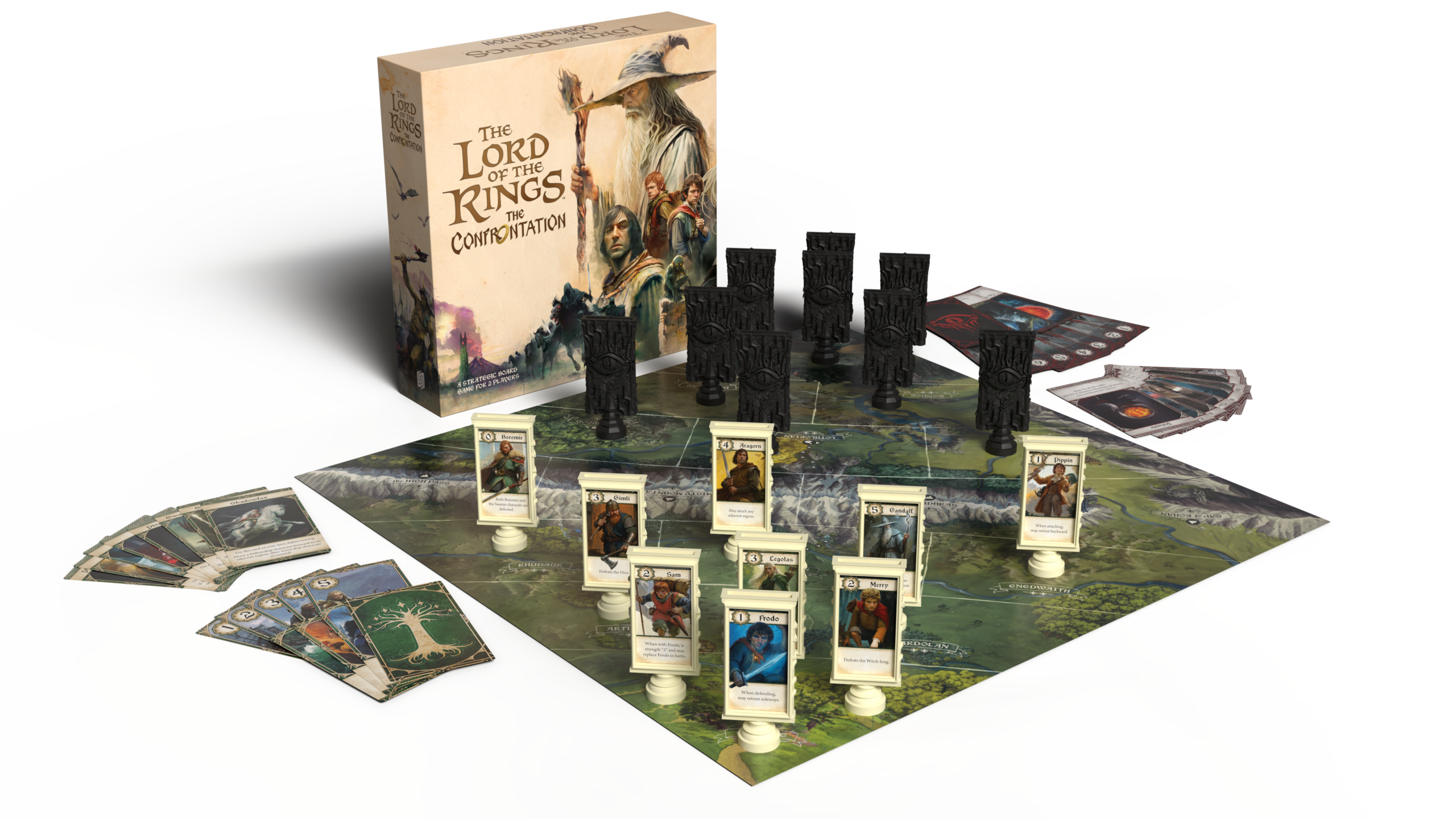 Der Herr der Ringe: Die Entscheidung ist ein taktisches Duellspiel für zwei Personen. Ein Spieler führt die Gefährten mit dem Ringträger Frodo vom Auenland Richtung